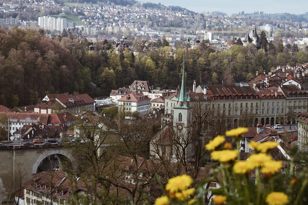 Próximo ao hotel, tem um parque super agradável chamado Rosengarten Bern e com uma das melhores vistas para a cidade. Fomos na primavera, então o parque estava cheio de flores, uma graça.