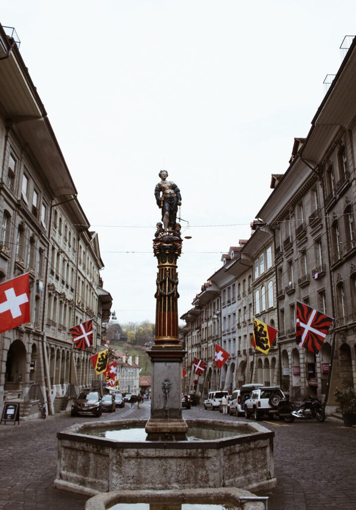 Seguindo reto você já estará no centro histórico. Esse “miolinho” tem praticamente 3 ruas, sendo a Gerechtigkeitsgasse a principal. Você pode andar por ali com calma, aproveitando cada cantinho. O centro histórico entrou para a lista de patrimônio Unesco, pois tem uma arquitetura medieval muito bem preservada. Chama muito atenção as fontes do século 16. A cidade possui mais de 100 fontes mas onze delas estão ali pelo centro e tem estátuas que contam uma lenda ou história da cidade. A conservação delas impressiona e você pode aproveitar para encher sua garrafinha d’água ali.