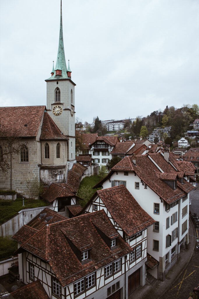 Ali no centro você também poderá visitar a Catedral de Berna, Berner Münster. Logo atrás dela, tem um espaço como se fosse uma praça/pequeno parque muito bonito, o Münsterplattform. Chegamos ali no final do dia e a vibe estava deliciosa, pessoas jogando bocha, xadrez, tinha muitas crianças brincando e pessoas admirando as vistas, pois ele fica no alto e ali você também consegue ter ótimas panorâmicas. Por ali também tem um cafezinho super agradável.