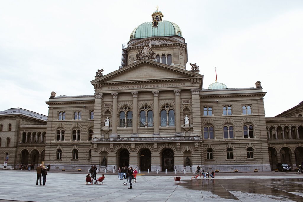 Outro local pra se visitar por ali é o The Parliament Building. O prédio em si é bem bonito e atrás dele temos outro ponto onde se tem vistas lindas pra cidade! Se o dia estiver claro e sem nuvens é possível ver algumas montanhas nevadas. A vista é de tirar o fôlego. Dali você consegue ver também o museu de história, que é também um museu que fala de Einstein. Ele se chama Bernisches Historisches Museum / Einstein Museum. O prédio parece um castelo 🙂