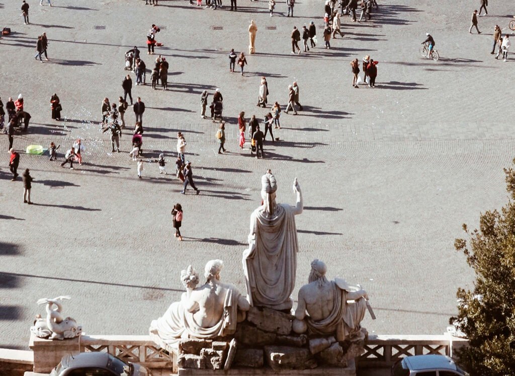 Para ter uma vista ampla e belíssima da Piazza del Popolo você precisa subir em direção ao parque Villa Borghese, em uma escadaria que fica na parte leste. Lá você conseguirá apreciar todas essas obras juntas, observar o vai e vem das pessoas, e ter uma vista linda de Roma, com todos os telhados e uma quantidade infinitas de igrejas, por qualquer lado que você olhe!