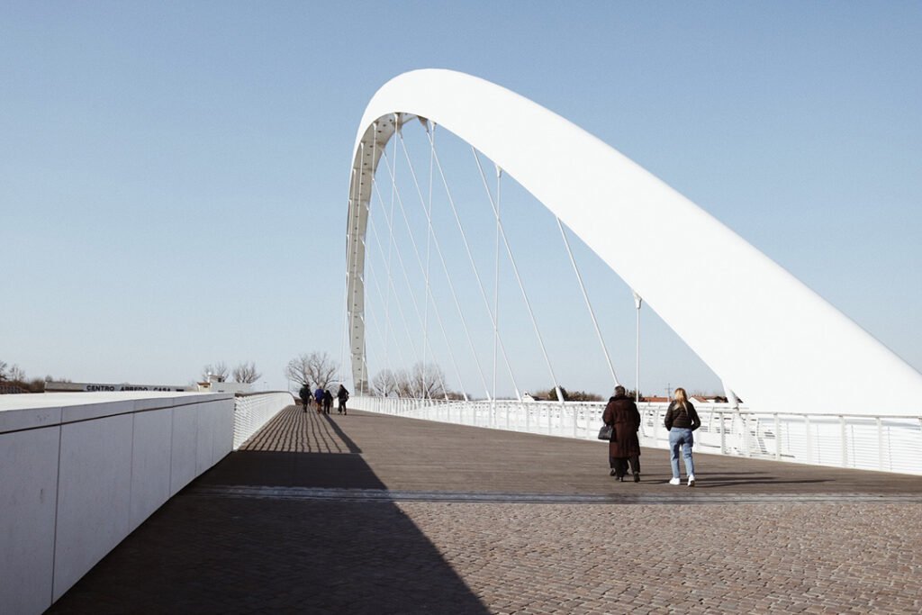 Depois de nos recuperarmos do almoço/café, saímos para uma última caminhada antes de voltar pra casa. Fomos na direção do rio Tanaro e foi muito agradável de andar por essa região. Conhecemos a Ponte Meier, também conhecida como Ponte Cittadella. Tem uma área bem extensa para pedestres e proporciona vistas bem bonitas.