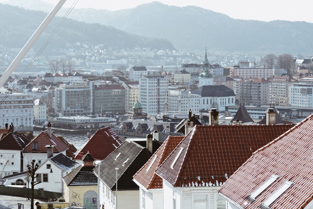 A época que fomos era fim de inverno, mas as temperaturas ainda estavam bem baixas. Importante dizer que Bergen é uma das cidades mais chuvosas da Noruega (e do mundo também, rs). O tempo todo formavam nuvens em cima das montanhas, que ficavam bem baixas e pareciam que elas iam invadir a cidade… chovia e parava de chover várias vezes ao dia.