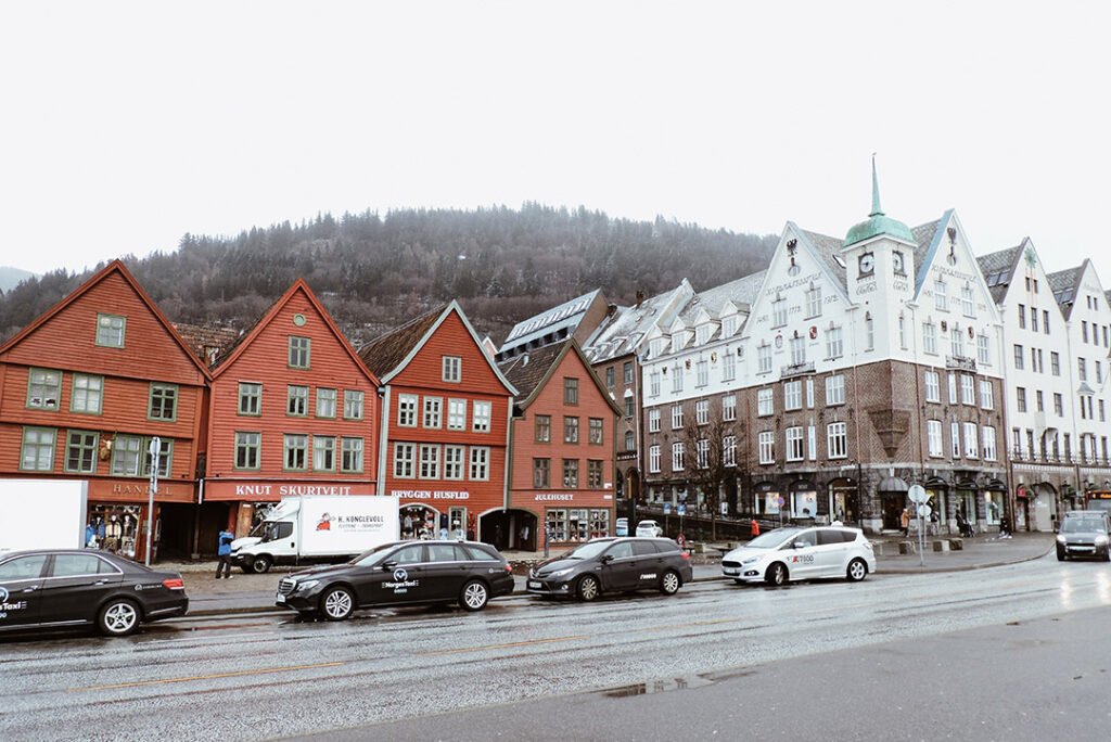 Chegando ao centro e ao porto da cidade, encontramos uma das atrações mais turísticas e até cartão postal pra Noruega chamado Bryggen, que são essas casinhas coloridas que ficam na beira do cais. Elas tem o estilo medieval do local e se tornaram Patrimônio Mundial Cultural da UNESCO em 1979. Esse local é um distrito portuário histórico, das mais antigas da Europa, e foi um centro de comércio no século XII, de onde controlaram o comércio de bacalhau do norte da Noruega. Hoje essas casas abrigam restaurantes, bares e lojas, além de nos trazer essa noção de como foi o local. Toda essa sua importância pode ser conhecida em um museu que também está ali, chamado Museu Bryggen.