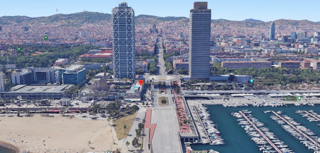 Além disso, está numa das mais belas regiões da cidade, na ponta da Carrer de la Marina, à beira mar. Na imagem abaixo – um print do Google – dá pra se ter uma ideia.
