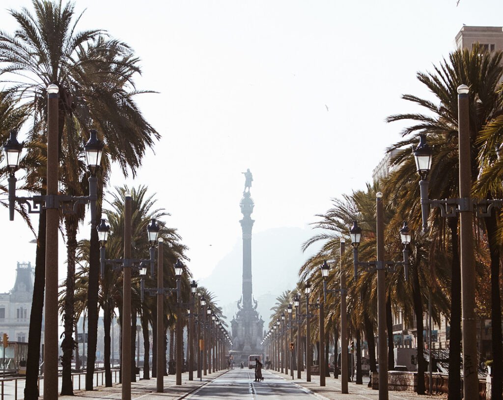 No final de Las Ramblas tem o monumento a Cristóvão Colombo. Essa foto foi tirada mais a frente, na Avenida Passeig de Colom.