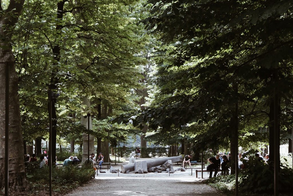 Essa área é a salvação para os dias quentes rs, com muitas árvores onde você pode andar devagar pelas sombras que elas proporcionam. Ao centro do Jardins, tem a obra do artista Giulio Paolini, intitulada Pedras Preciosas.
